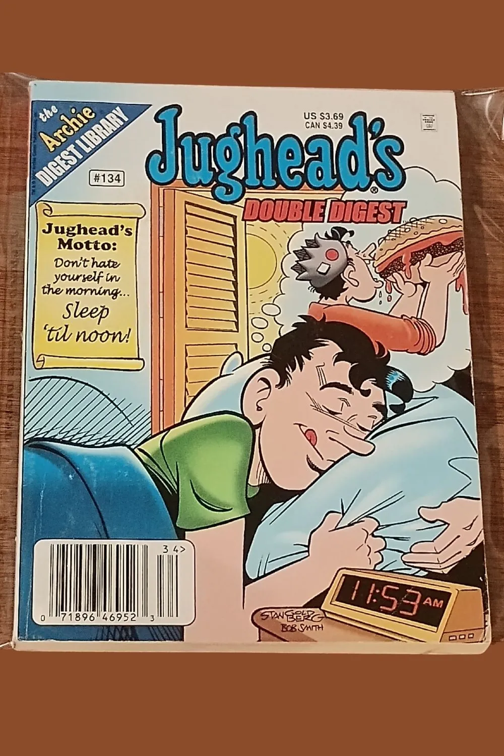 Bring home a perfect piece of Riverdale humor with Jughead’s Double Digest #134. This issue features one of the most memorable Jughead covers—oversleeping until 11:53 AM while dreaming of a towering burger, all under his signature motto: “Don’t hate yourself in the morning… Sleep ’til noon!”