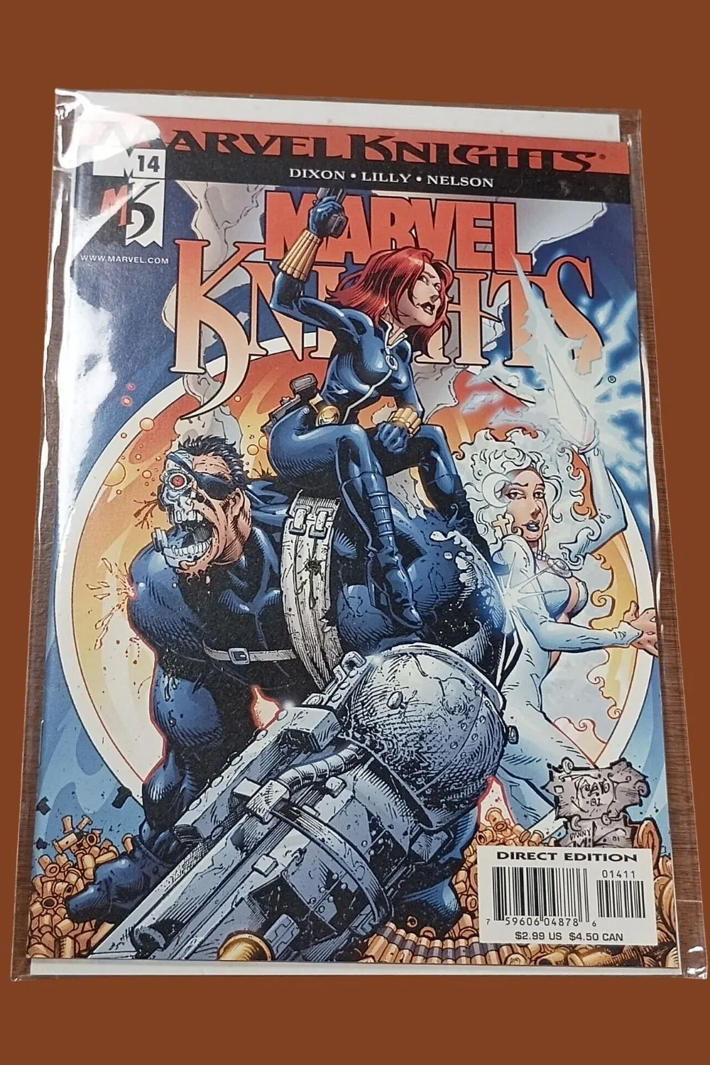 Add a high-energy issue from the Marvel Knights era with Marvel Knights #14 (2001)—featuring a powerful lineup of street-level Marvel heroes including Black Widow, Punisher, and Daredevil. Written by Chuck Dixon with dynamic artwork by Eduardo Barreto and Flint Henry, this series helped redefine Marvel’s darker, more grounded storytelling.