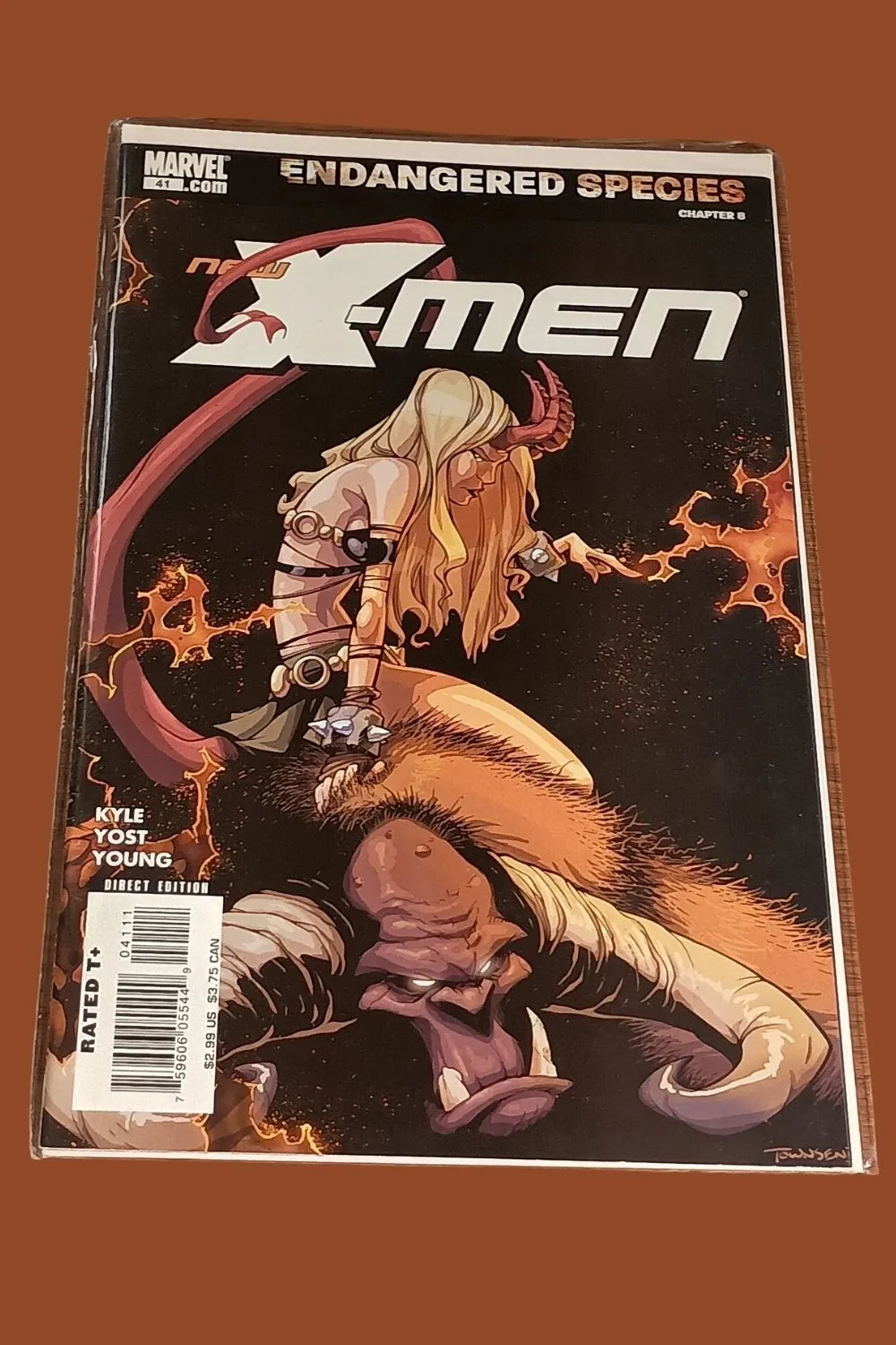 Add an important chapter from a major X-Men crossover with New X-Men #41, featuring β€œEndangered Species” Chapter 8 from Marvel Comics. Written by Craig Kyle and Christopher Yost, this issue ties into the dramatic aftermath of House of M, when the mutant population has been reduced to dangerously low numbers.