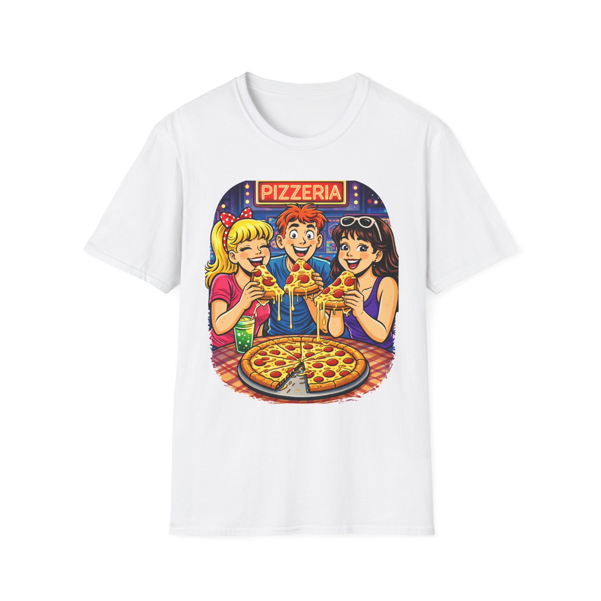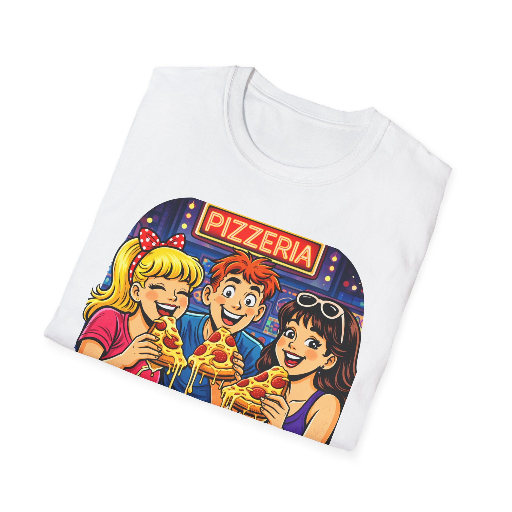 Soft, lightweight, and easy to wear, it’s perfect for casual outings, game nights, conventions, or just repping your love for classic pizza culture. Whether you’re a foodie, a retro fan, or someone who remembers when nights were all about pizza and hanging out—this shirt hits that feeling perfectly.
