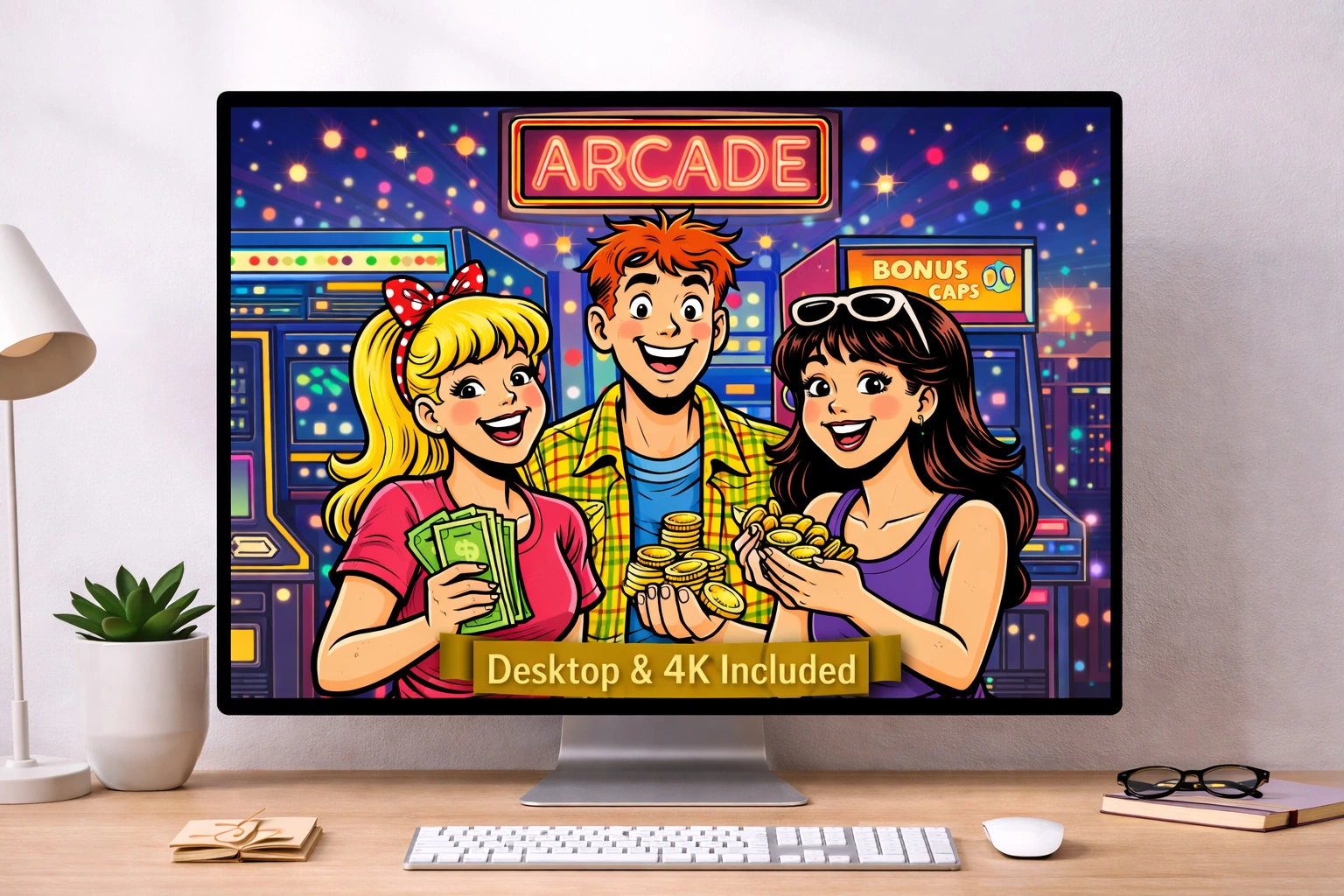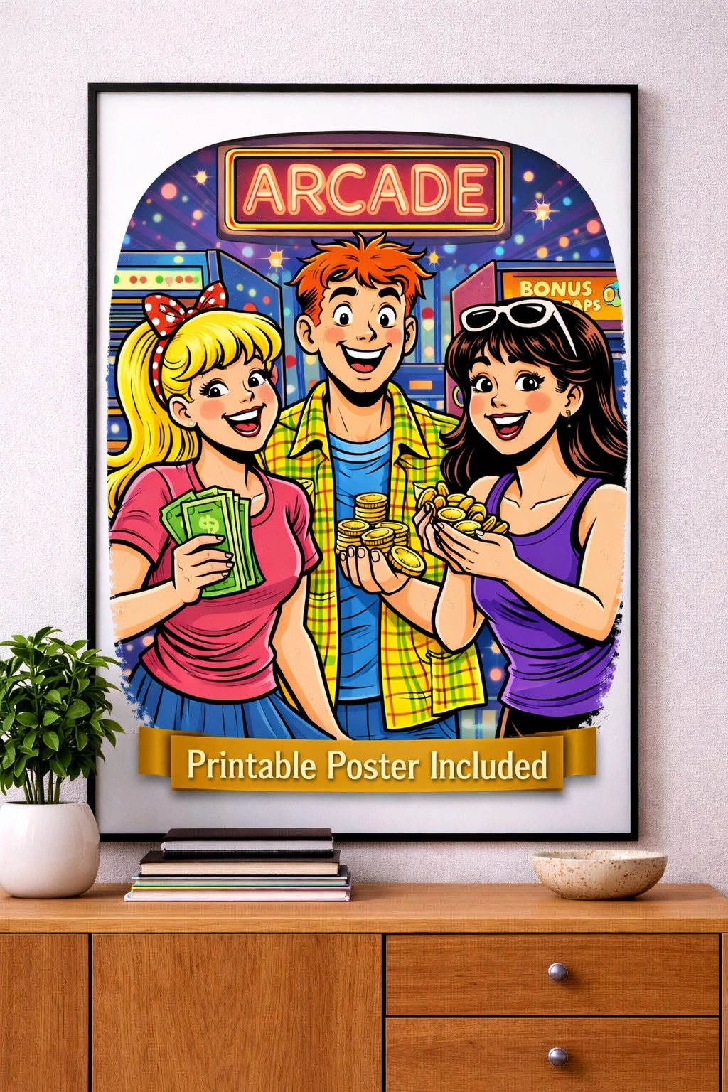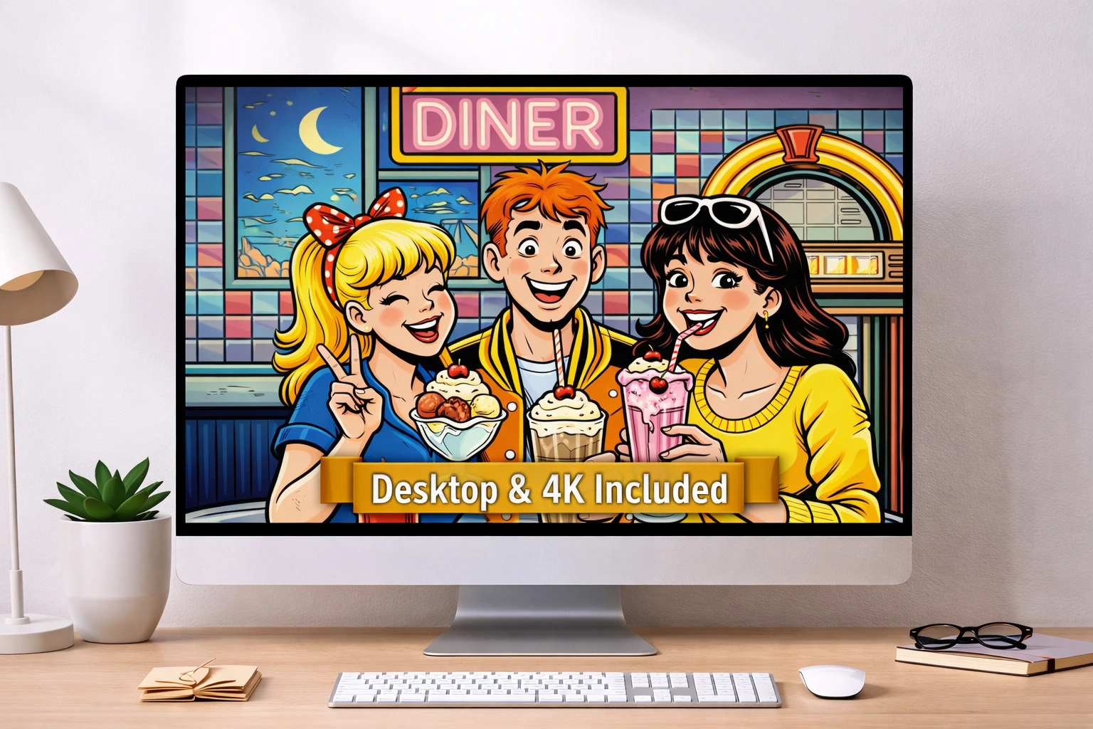 This retro-inspired digital art pack brings together five vibrant designs capturing the energy of beach days, arcade nights, roller rinks, diners, and late-night pizza runs. Each piece is packed with nostalgic charm and bold cartoon style, making it perfect for adding personality to your space or your screens.
