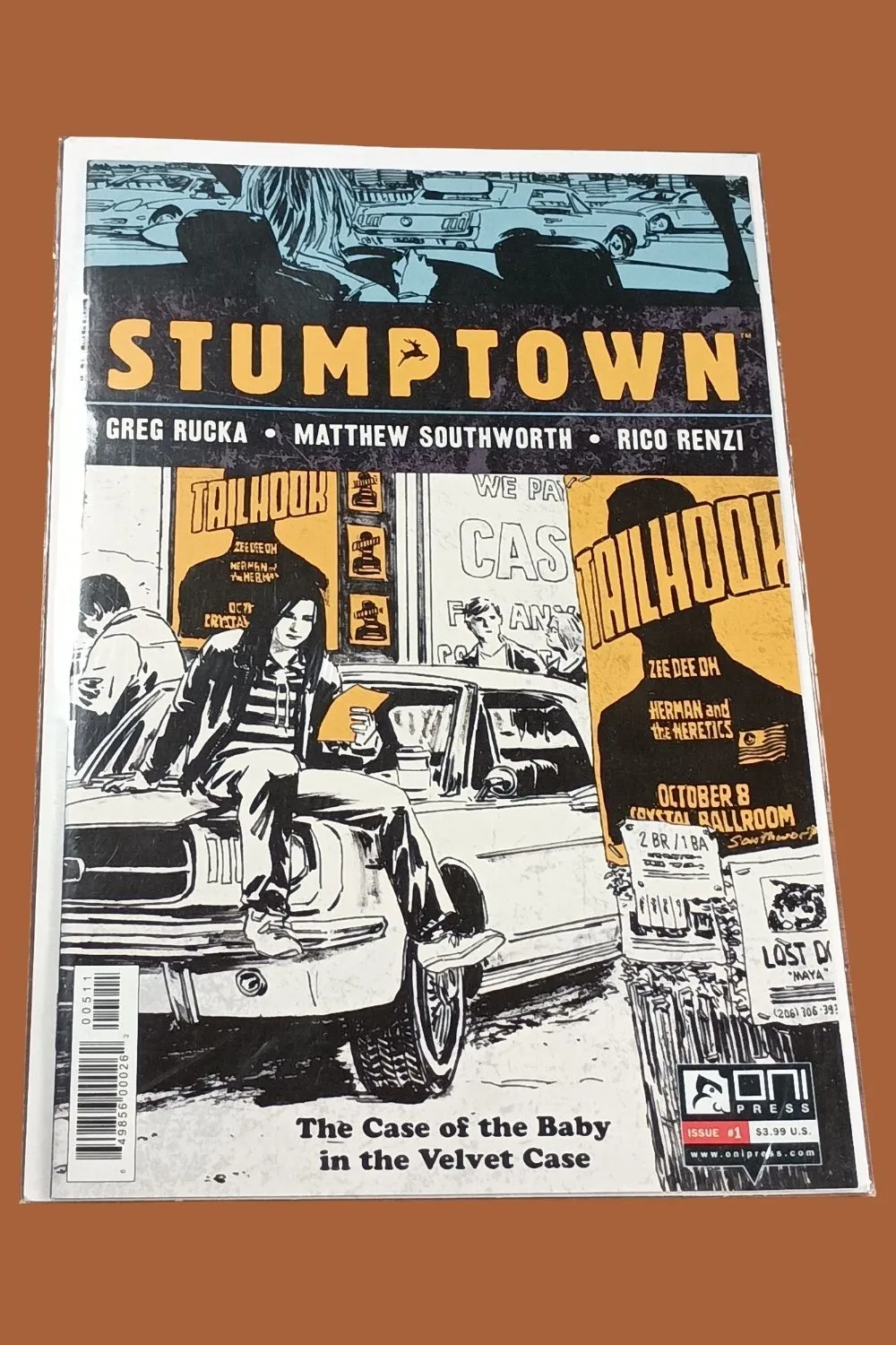 With atmospheric black-and-white artwork by Matthew Southworth and striking design by Rico Renzi, this first issue—“The Case of the Baby in the Velvet Case”—sets the tone for one of the most beloved modern indie crime comics. A standout from Oni Press, Stumptown blends classic noir storytelling with contemporary edge.