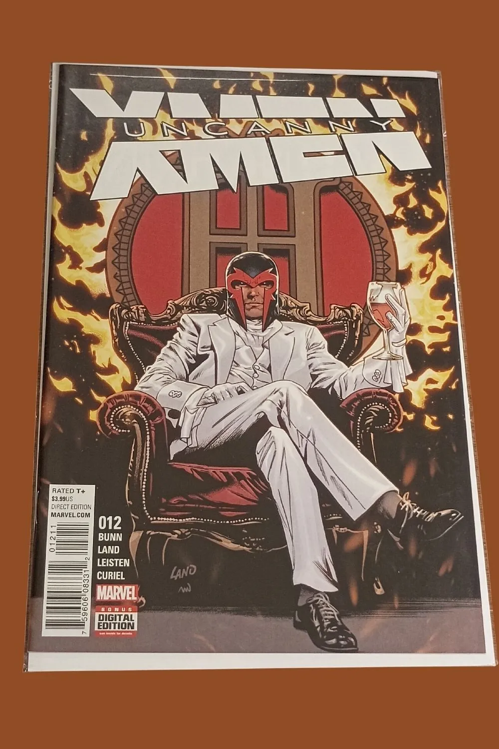 Command attention on your Marvel shelf with Uncanny X-Men #12, a standout issue from the modern era featuring an unforgettable Magneto-centric cover. Seated like a king amid flames, Magneto’s presence sets the tone for a story steeped in power, control, and high-stakes mutant politics—making this issue instantly recognizable and highly collectible.